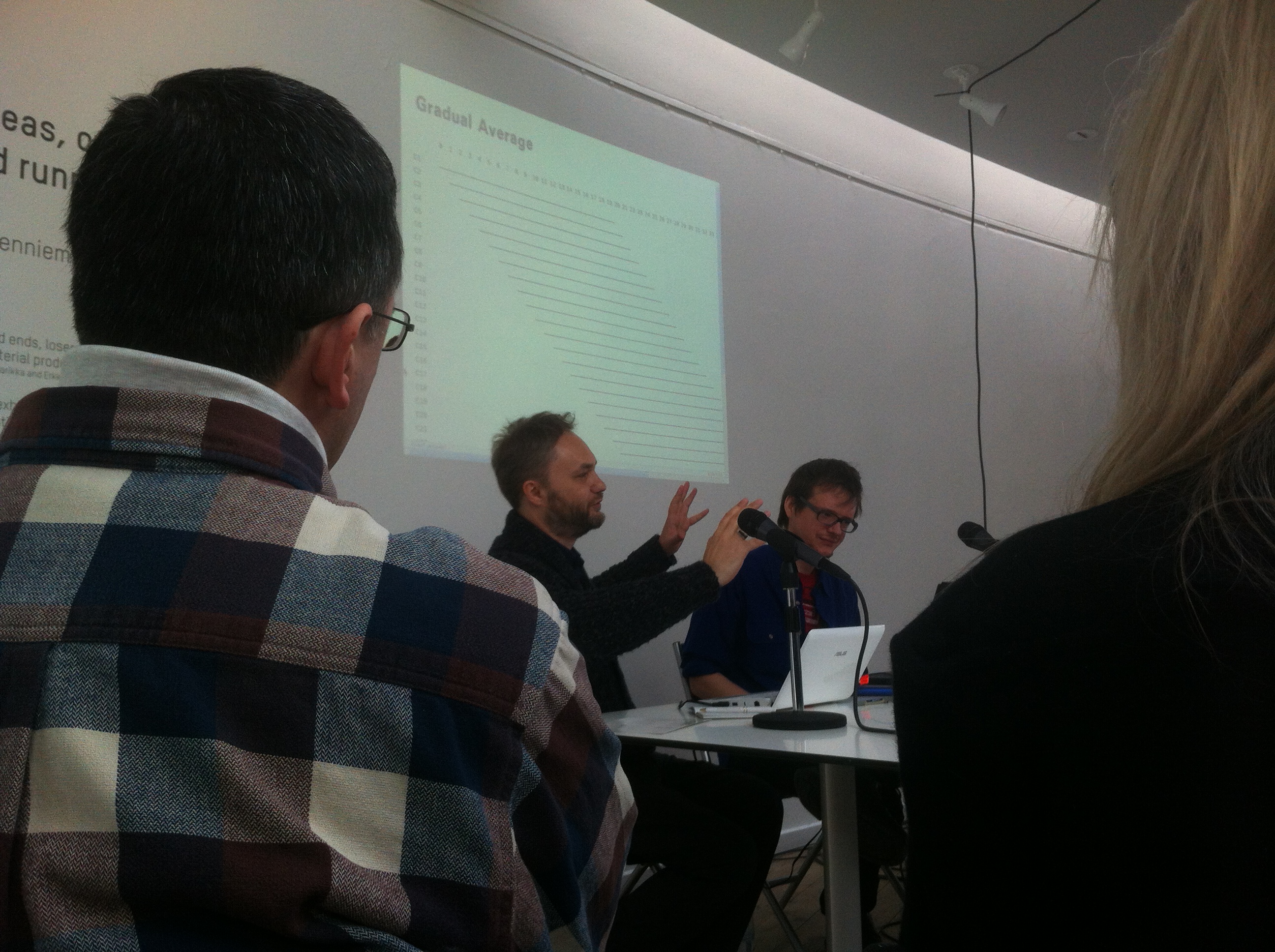 The first presentation was by the artist group, Constant, who at Documenta 13 in Kassel had that curated a project that experimented in interactive installations of Kurenniemi’s vast and discursive cassette archive of ‘sound diaries’. Constant described that their challenge with this material ranged from the sheer vastness of the archive, to the ambiguous material of Kurenniemi’s sound documenting (sometimes interviews, sometimes humming and talking to himself in the car, sometimes intelligible nonsense, sometimes clear theorisations on art and science, sometimes reading out passing cars’ license plates), as well as the ethics of essentially making public the private records of people implicated by the audio – some cassettes even contain audio of Kurenniemi having sex . Therefore the processes through which the sound data had to be made accessible had to cushion and protect the individual characters in the diaries, filter and frame the large amount of material, as well as best representing the spirit of the archive. The key philosophy Constant appropriated in their approach was one of ‘random access’.